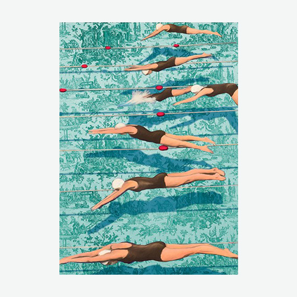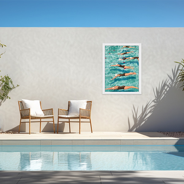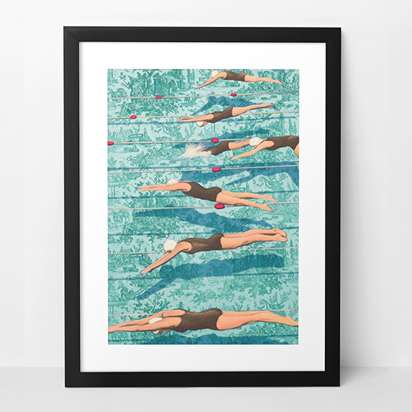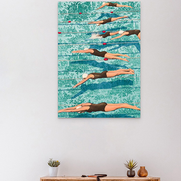 Indulge in the contemporary allure of 'Swimmers' by Steven Hill, transformed into vibrant wall art. This premium giclée print on canvas radiates modernity and flair, perfect for enhancing your home or office with a touch of funk and sophistication. Crafted with eco-friendly, water-based inks for lasting color fidelity, it's meticulously hand-stretched onto sturdy wooden bars by skilled artisans, ensuring enduring allure for years to come.