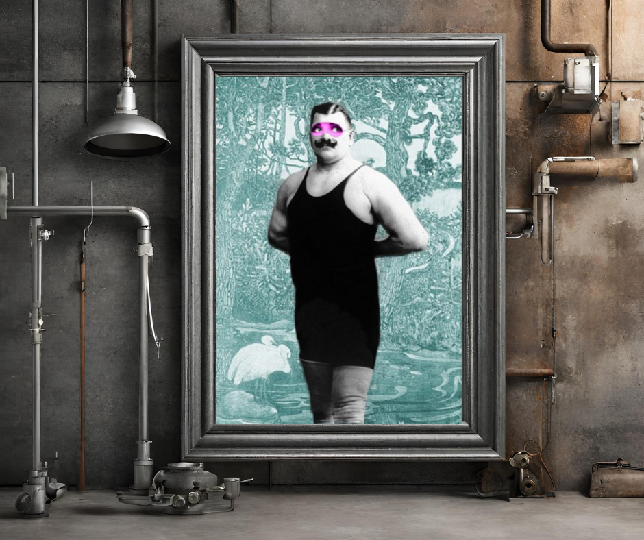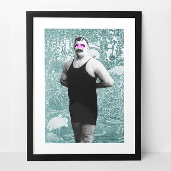 Explore 'Strongman,' a delightful addition to Matt Spencer's whimsical picture series. This premium giclée on canvas combines vintage photographs and elegant wallpapers in a playful collage. Perfect for any space, it's crafted with eco-friendly, water-based inks for vibrant hues and durability. Expertly hand-stretched onto sturdy wooden bars, each detail faithfully captures Spencer's original artwork, promising lasting beauty.